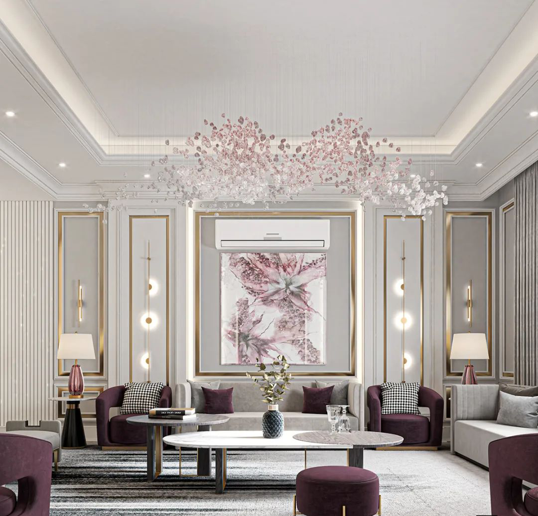 宽敞的会客区则用玫红色调来呈现优雅、灵动的室内氛围,米色和红色的鲜明对比突出空间的层次,彰显错落有致的节奏情绪。