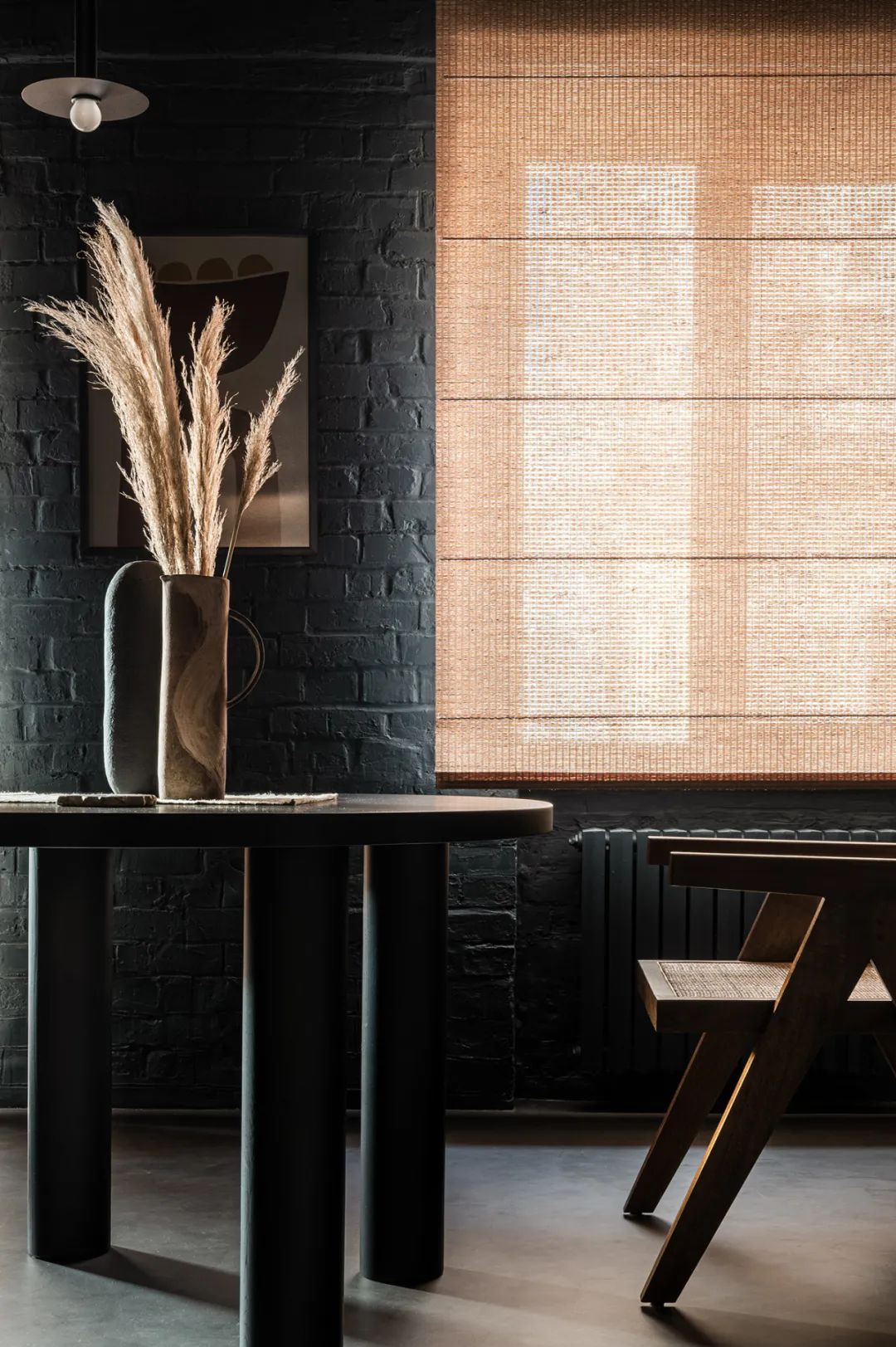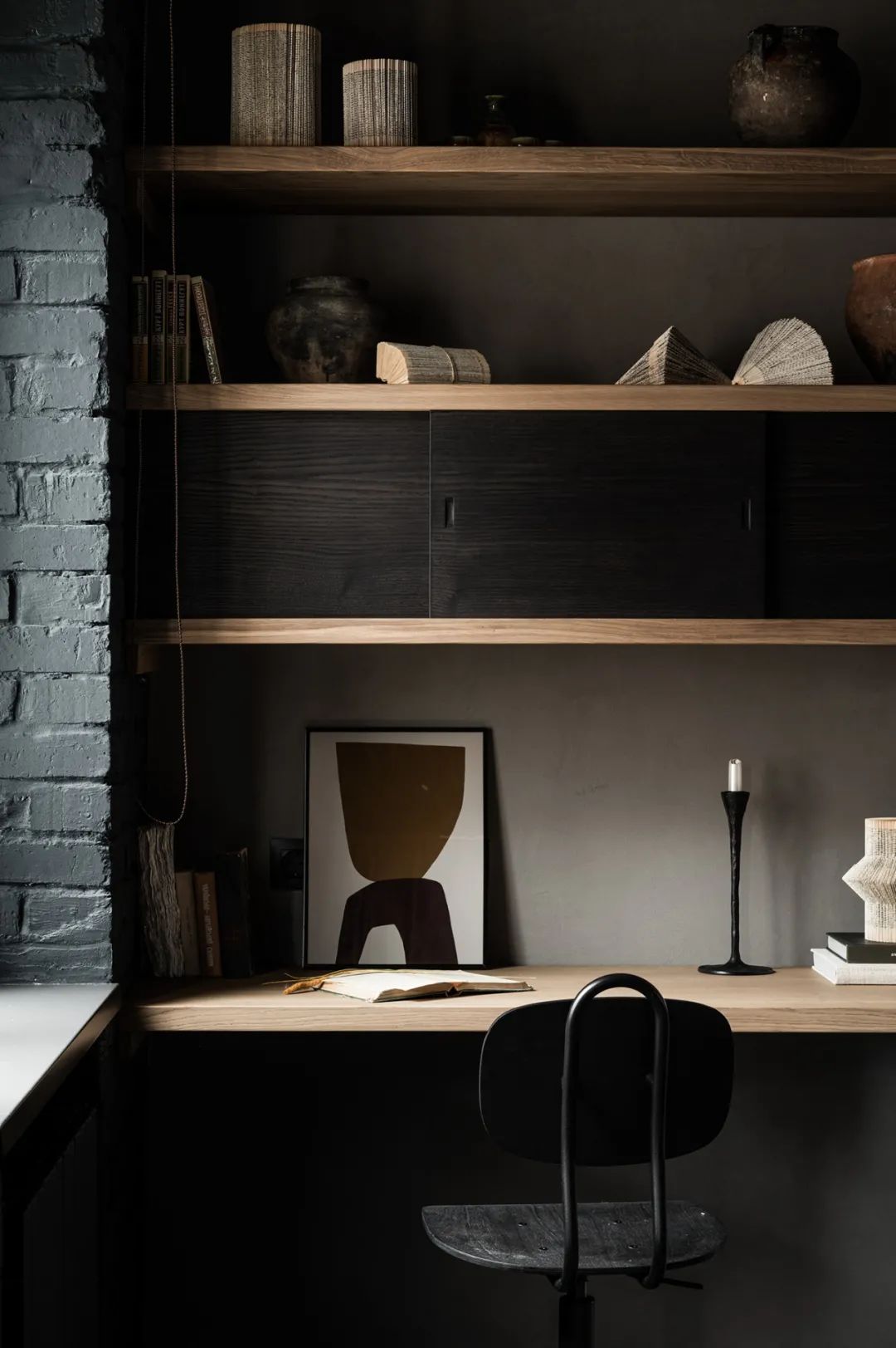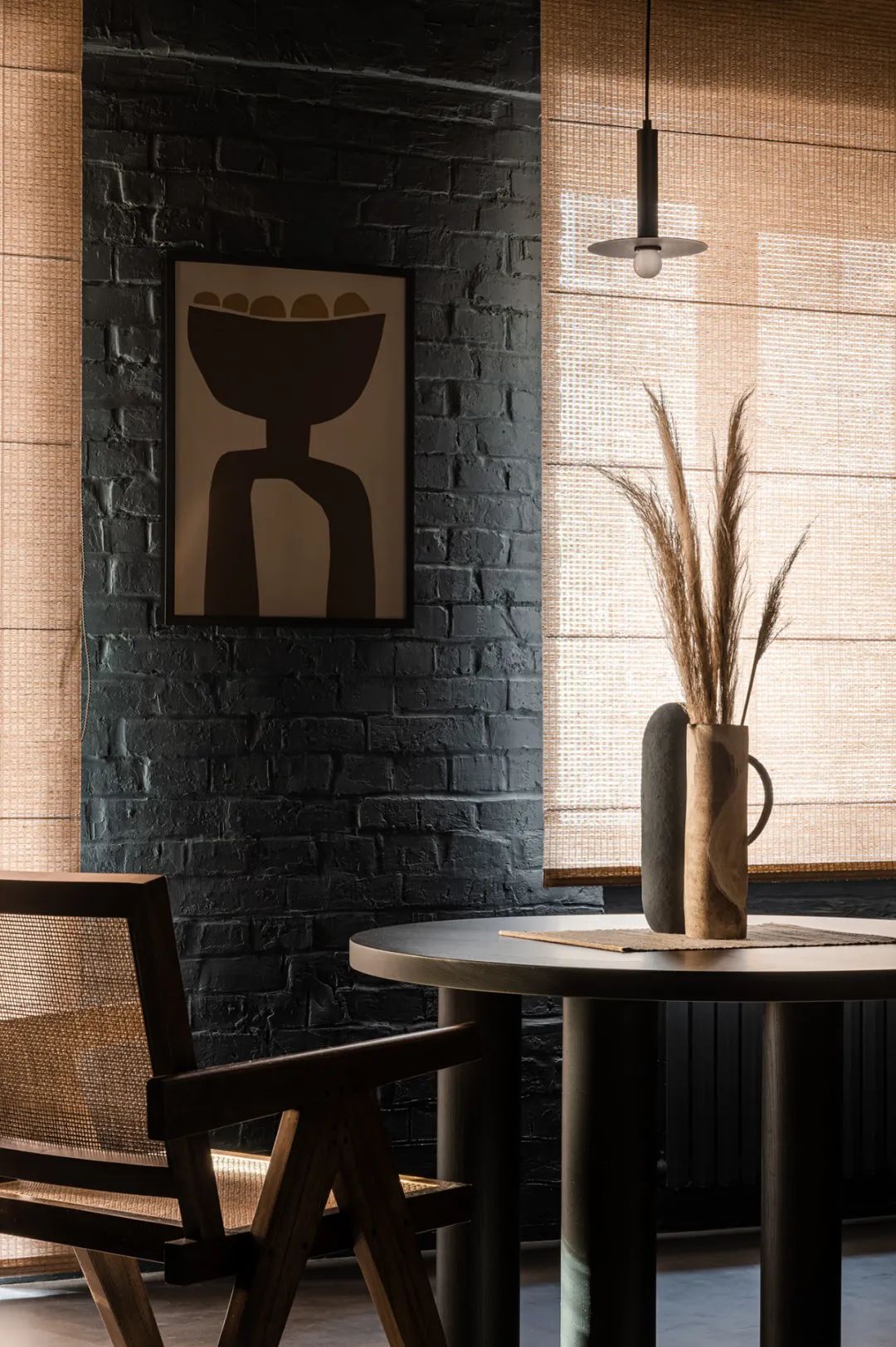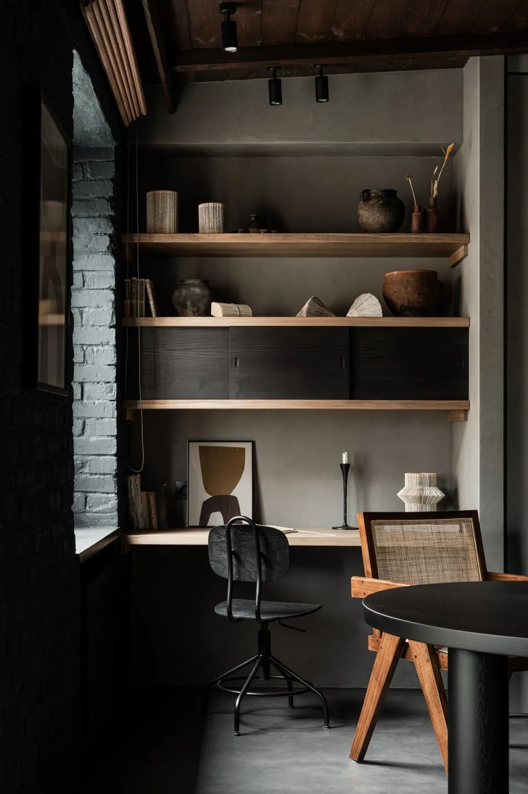 整个室内以暗色系为主,黑色的砖墙布满了每一处角落,虽然暗沉却毫不压抑,身处在这个空间可以让人由内而外的散发出一种安心感。