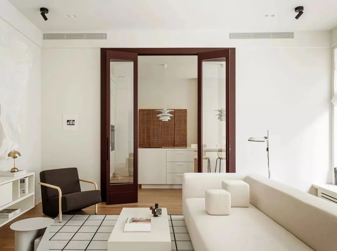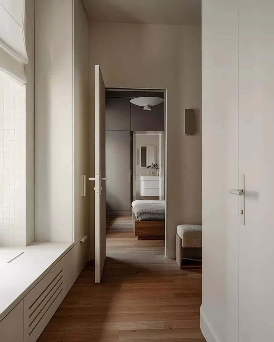 这套充满艺术气息的公寓是Snezhana Zucetsaeva和Evgenia Dubrovskaya新作,公寓的总面积为70㎡,居住者是一位年轻女性。设计师利用干净利落的几何形状塑造空间,营造出现代极简主义下的几何美感,形成一种简洁高级的视觉体验。