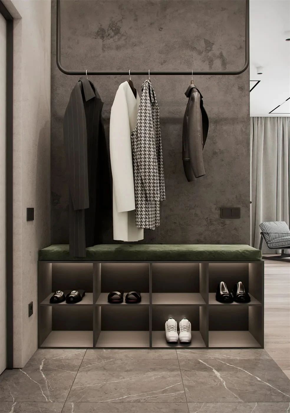 浅色的木质地板与复古绿的软饰相对比,交织成一片柔和温润的宁静空间。